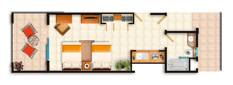 Room descriptions and amenities are examples and are not representative of all room types. Room descriptions and amenities shown here are not guaranteed and are subject to differ at any time. *Please note that each child over two years of age occupying a unit shall constitute as one person.